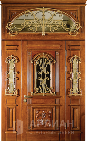 Входная парадная дверь с ковкой отделка натуральным деревом №79